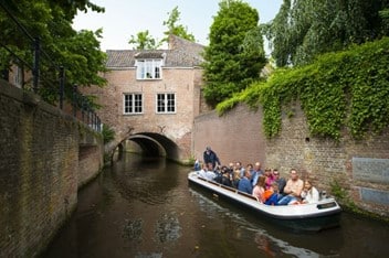 Hier beleef je direct het Bourgondische Den Bosch. Overal zie je terrassen om je heen. Vele terrassen langs het water waar je kunt zitten of je gaat rechtsaf de Lepelstraat in. Daar zie je het beeld van Zoete Lieve Gerritje staan die over de Binnendieze uitkijkt. Hier tegenover is de opstapplaats voor de Binnendieze vaartocht. Als je van plan bent om een tocht te maken over deze indrukwekkende Binnendieze dan moet je vooraf een plaats reserveren. De tochten zijn zo populair dan de kans anders groot is dat er geen plaats is. Via deze link kun je vooraf reserveren: https://dagjedenbosch.com/activiteiten/historische-route-op-de-binnendieze/