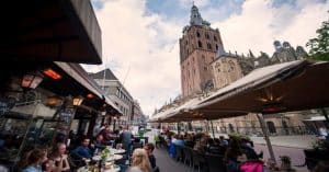 Via de Kerkstraat loop je door naar de parade. Ook hier weer vele terrassen aan de voet van de prachtige st. Janskathedraal.